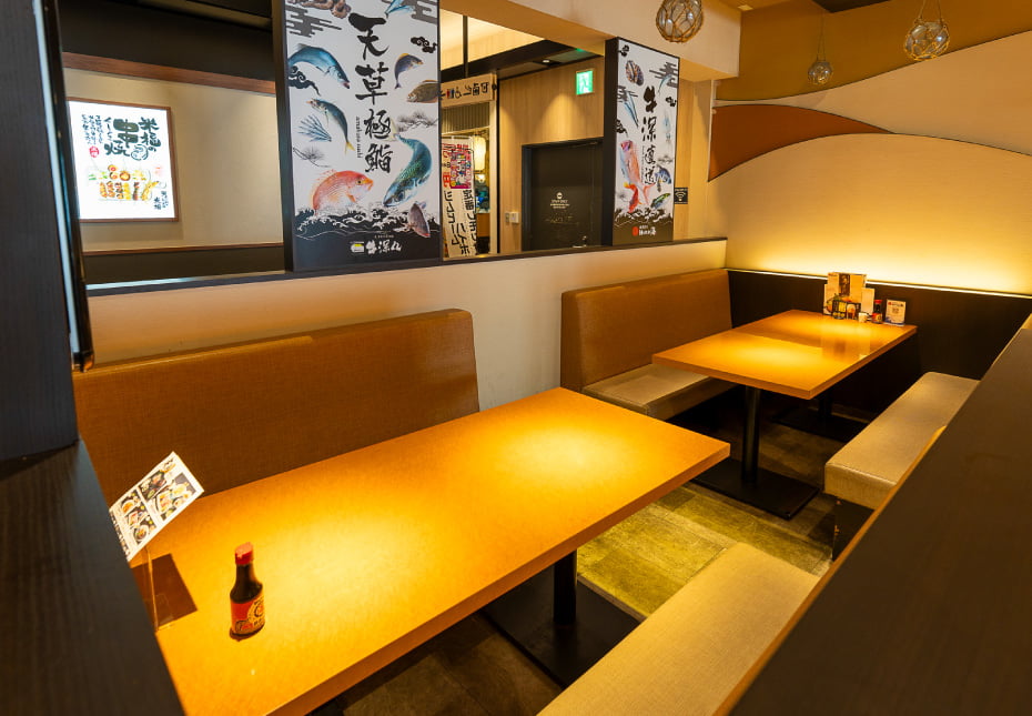 牛深のお魚を中心とした熊本の郷土料理を提供しています。メニューには、新鮮なお魚を使った海鮮丼や刺身の盛り合わせ、熊本の地酒、馬刺しなどをラインナップ。熊本にお越しいただいた方はもちろん、「せっかくの出張なのに忙しくて熊本を満喫できなかった」という方も新幹線に乗る前に、ぜひお立ち寄りください。隠れたおすすめメニューは「とん食堂のカレー」です。熊本県内の常連の方々を中心に、大変ご好評をいただいております。こちらもぜひご賞味ください。