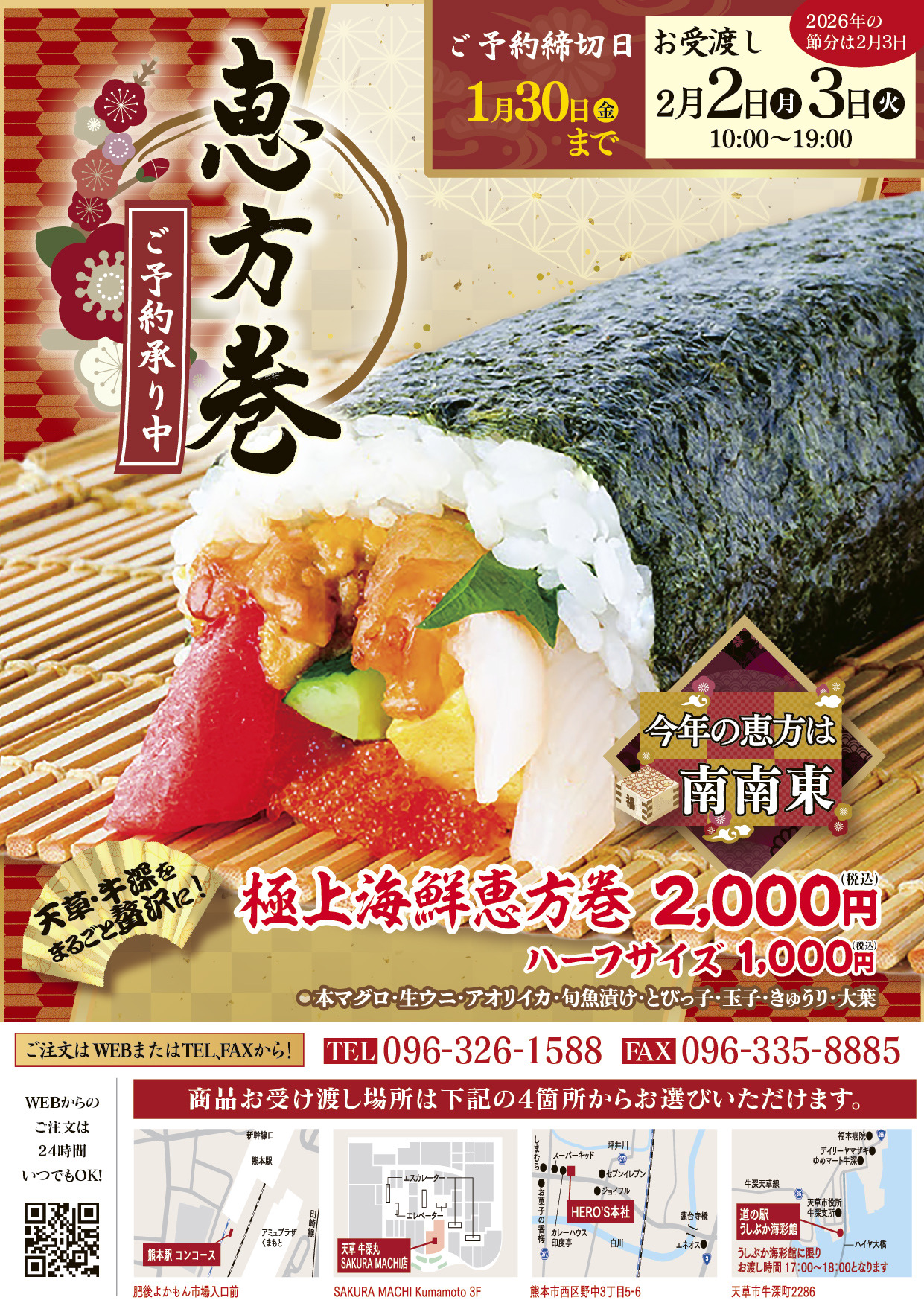 🐟 極上海鮮恵方巻 2,000円(税込)